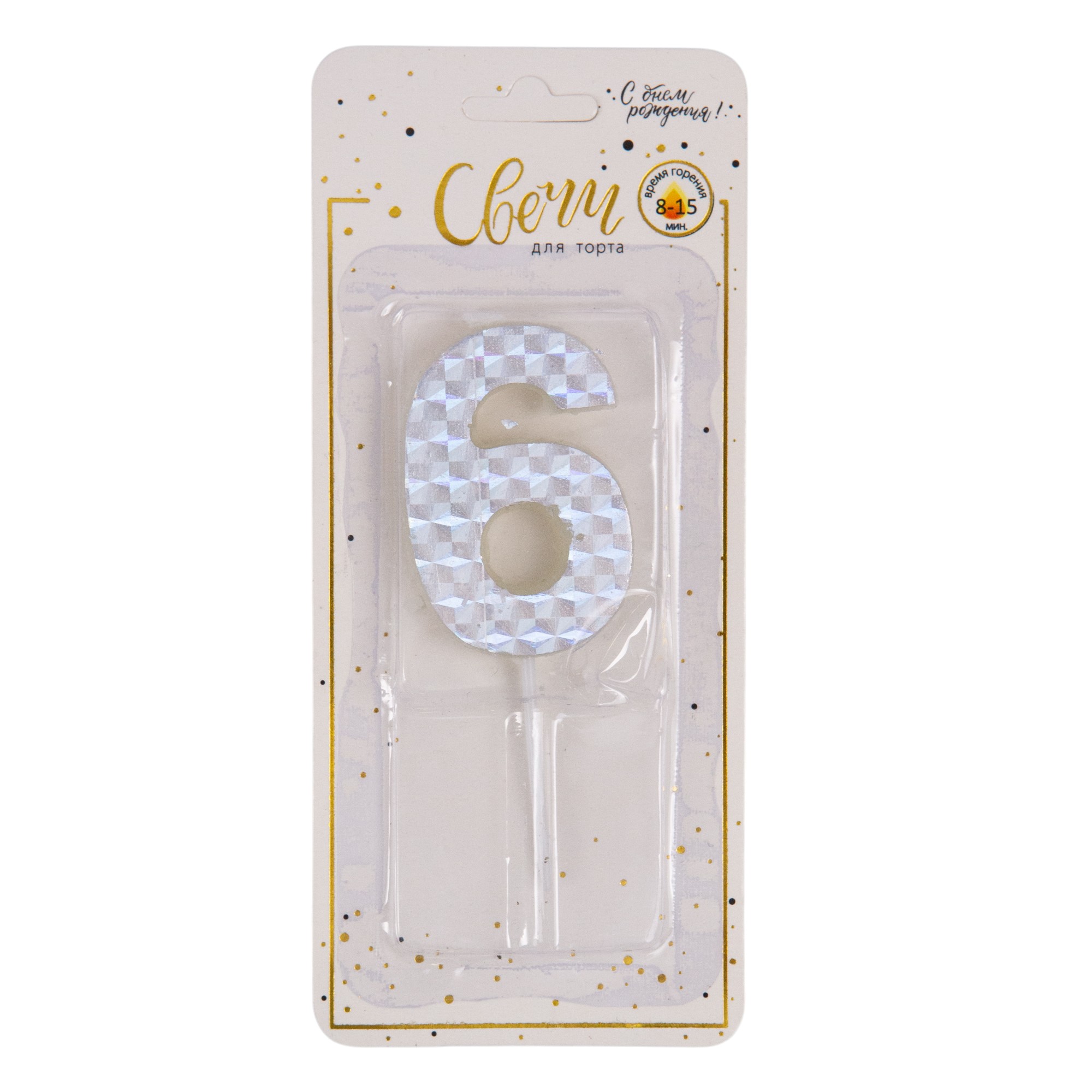 Свеча тортовая цифра 6 "Голография" металлизированная