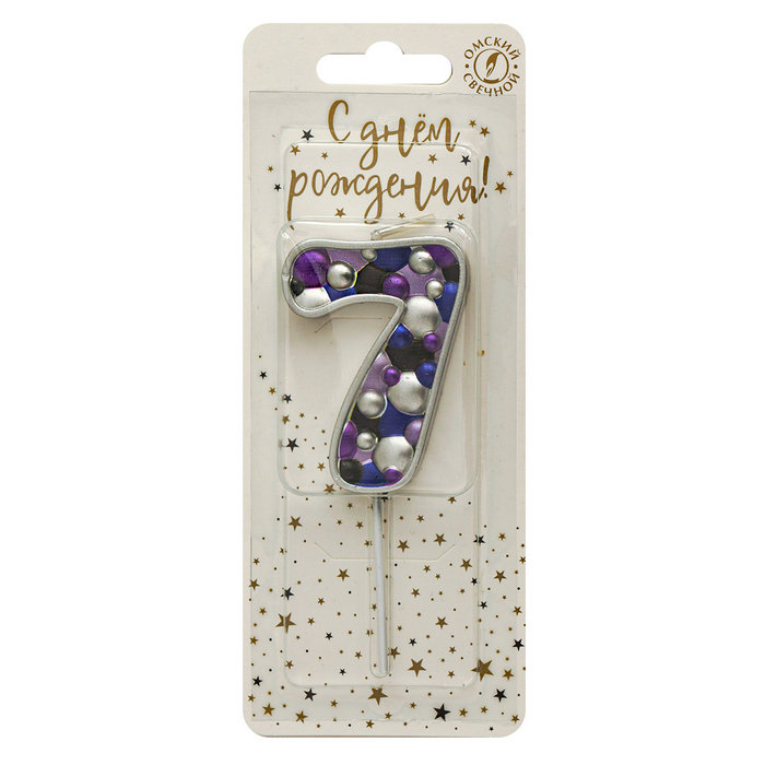 Свеча тортовая цифра 7 "Пузырьки" Серебро