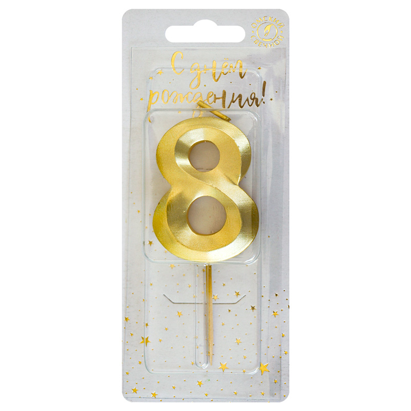 Свеча тортовая цифра 8 на шпажке "Витые" Золото