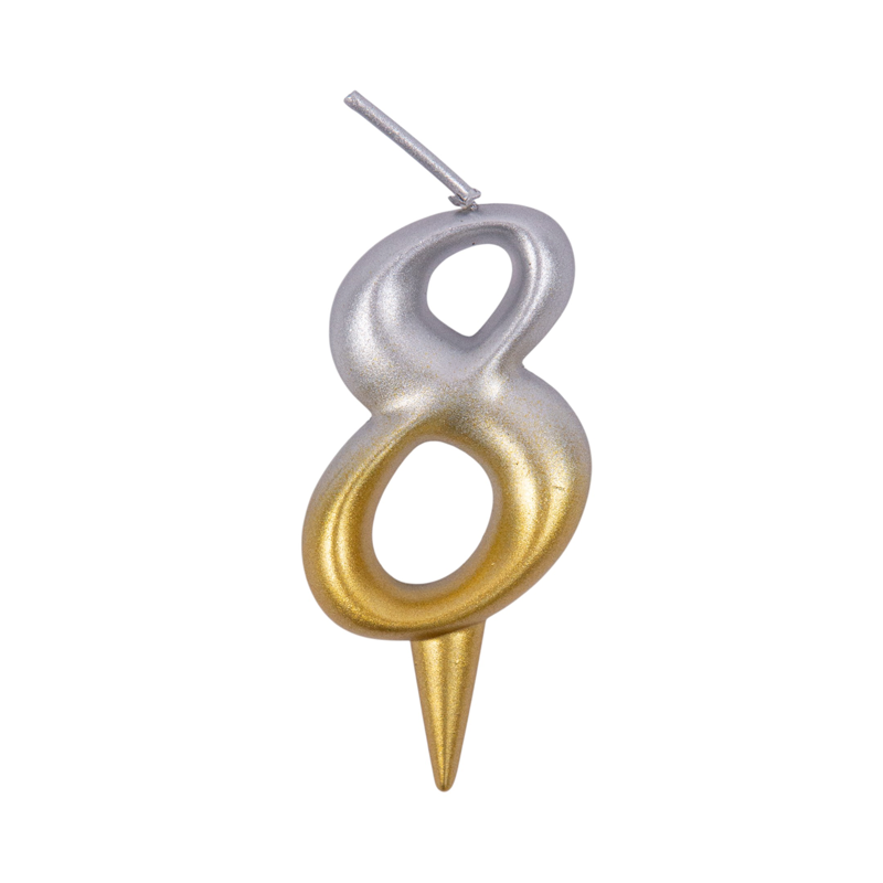 Свеча тортовая цифра 8 "Золото-Серебро"