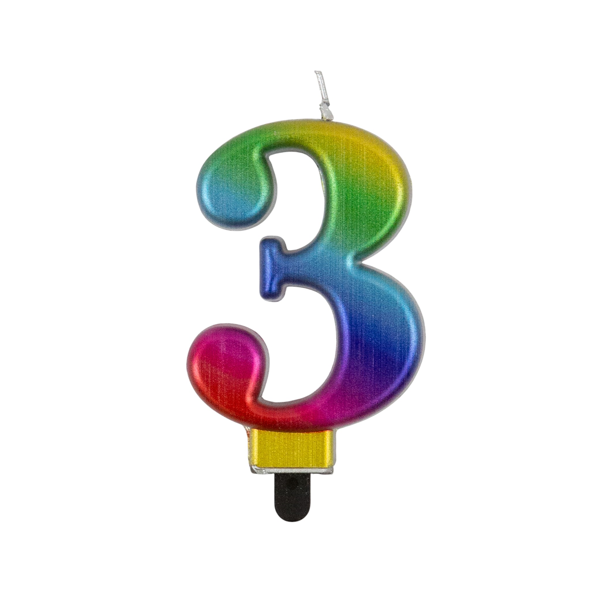 Свеча тортовая цифра "Радуга" 3 металлизированная