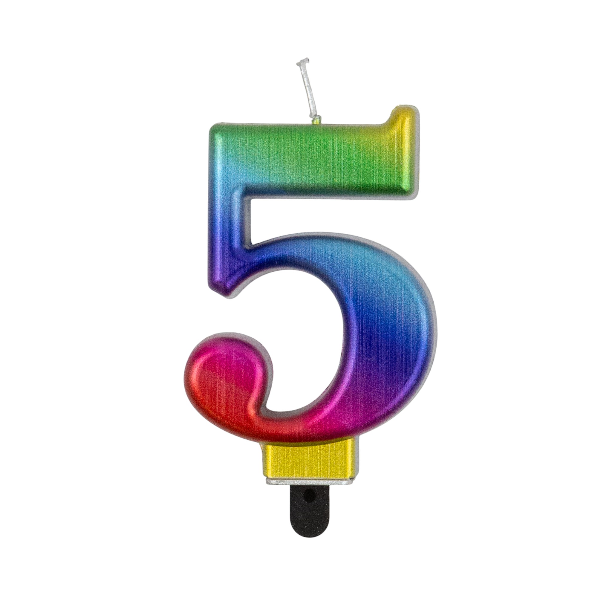 Свеча тортовая цифра "Радуга" 5 металлизированная