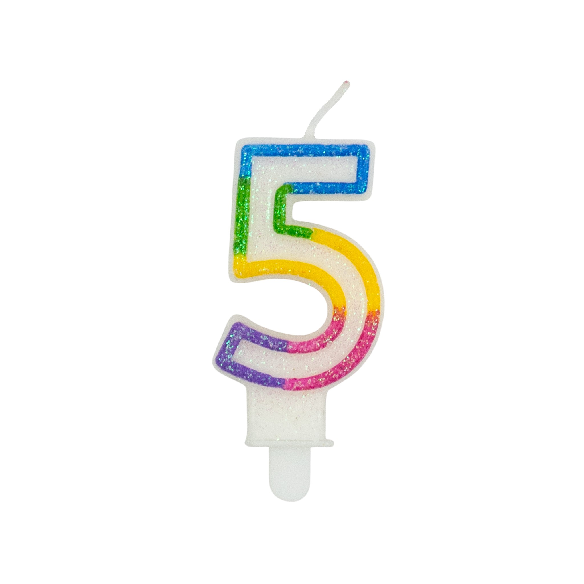 Свеча тортовая цифра "Разноцветный градиент" с глиттером 5