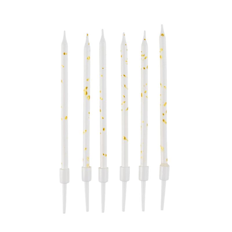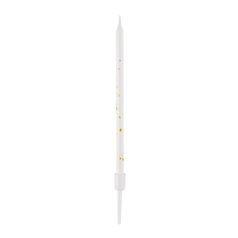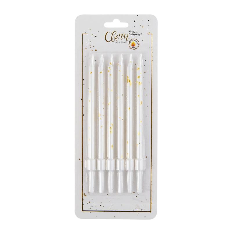 Свечи тортово-коктейльные Белые с золотом с держателями