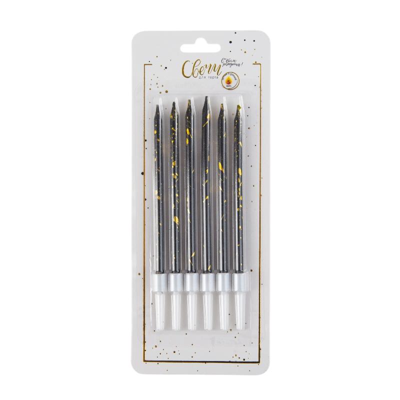 Набор свечей представлен в Черном с золотом с держателями варианте Уникальный размер 12 см., и гладкая форма свечи эстетично дополнит самые лаконичные дизайны праздничного торта.