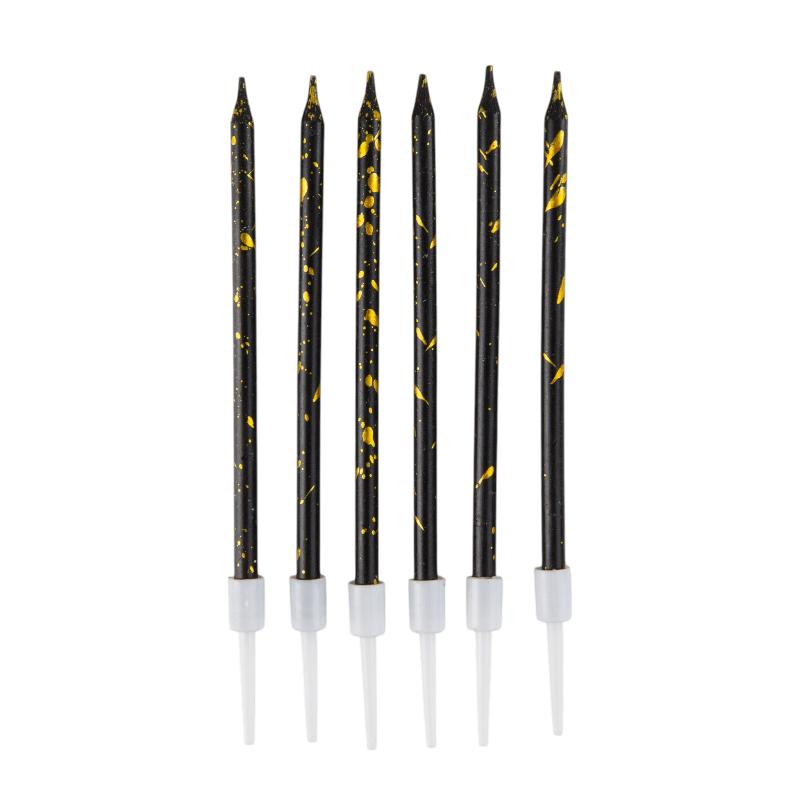 Свечи тортово-коктейльные Черные с золотом с держателями
