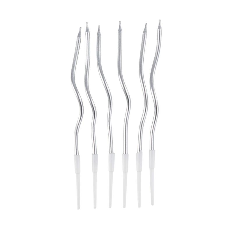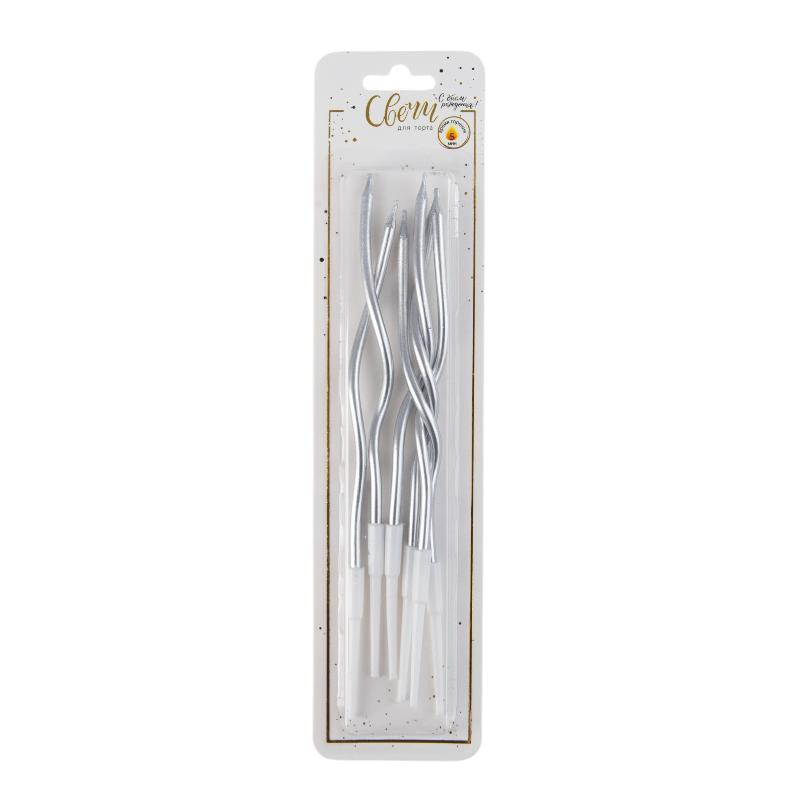 Набор свечей представлен в однотонном классическом варианте серебряного металлизированного цвета Уникальный размер 13 см., и спиральная форма свечи эстетично дополнит самые лаконичные дизайны праздничного торта.