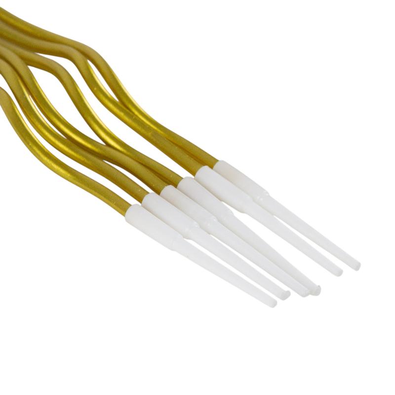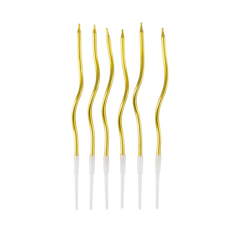 Набор свечей представлен в однотонном классическом варианте золотого металлизированного цвета Уникальный размер 13 см., и спиральная форма свечи эстетично дополнит самые лаконичные дизайны праздничного торта.