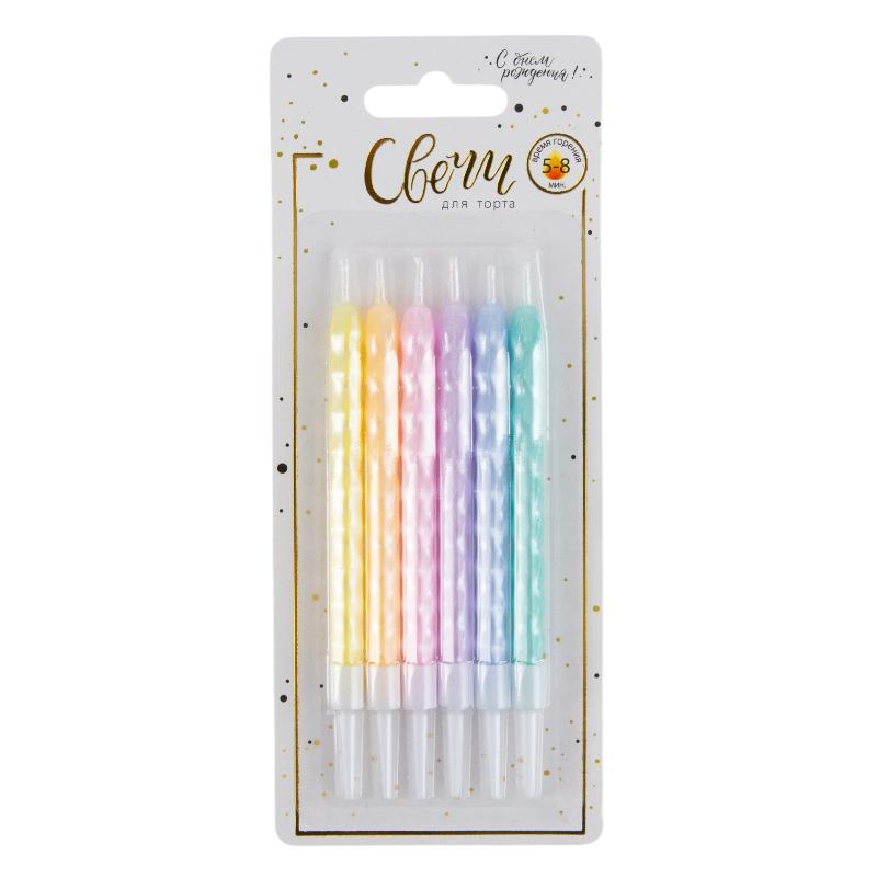 Свечи тортовые классические "Париж" Пастель разноцветная с держателями