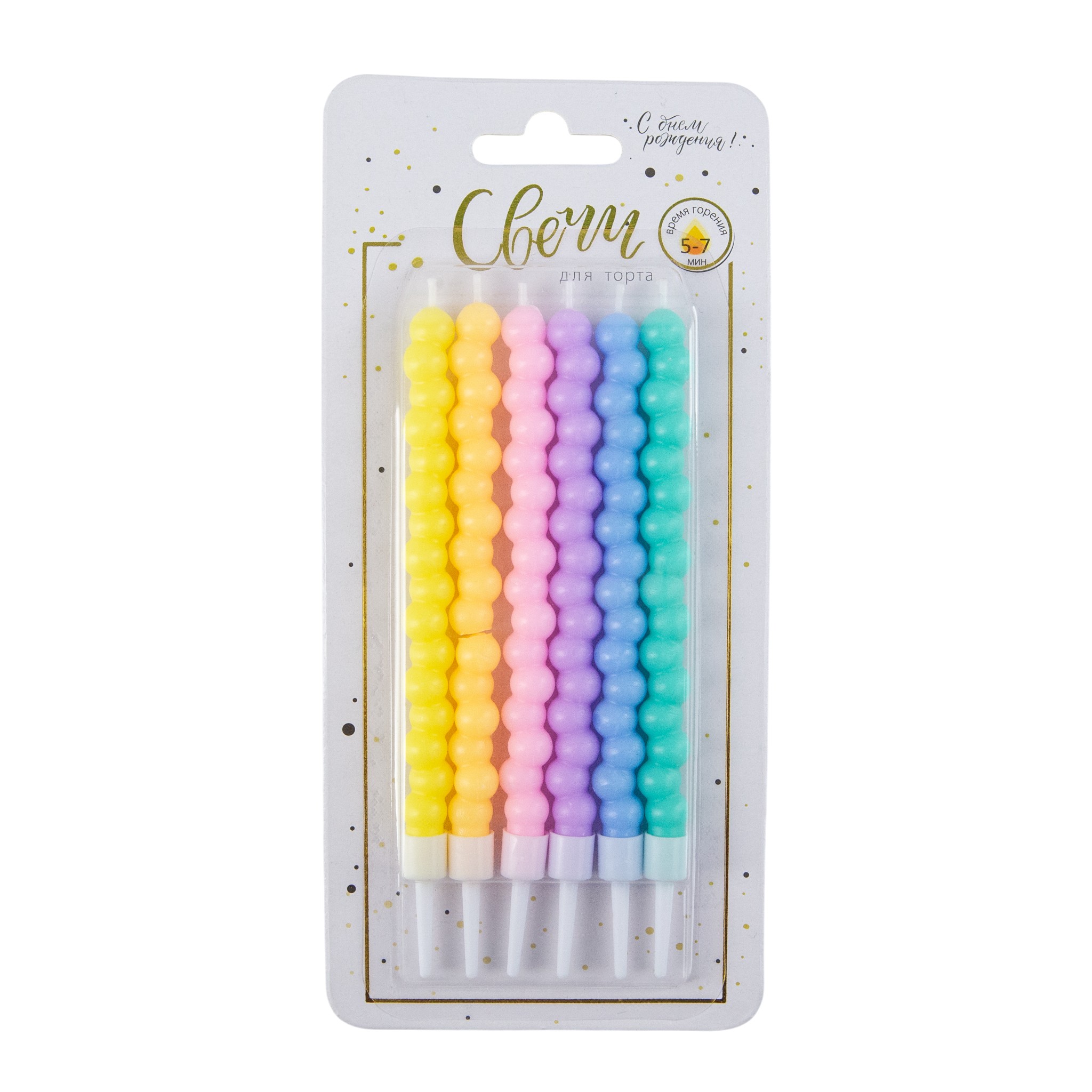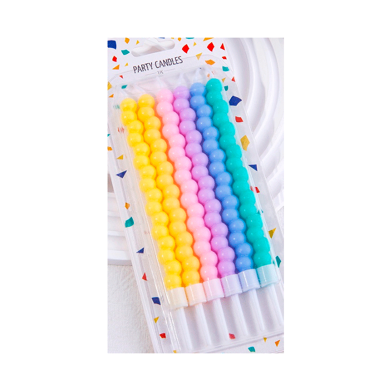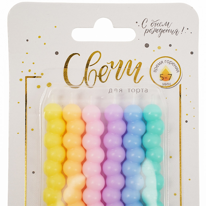 Свечи тортовые классические "Пузыри" (Пастель разноцветная) с держателями УЦЕНКА
