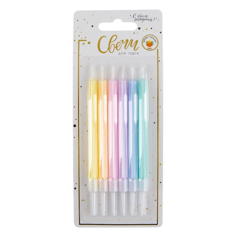 Свечи тортовые классические "Рим" Пастель разноцветная с держателями