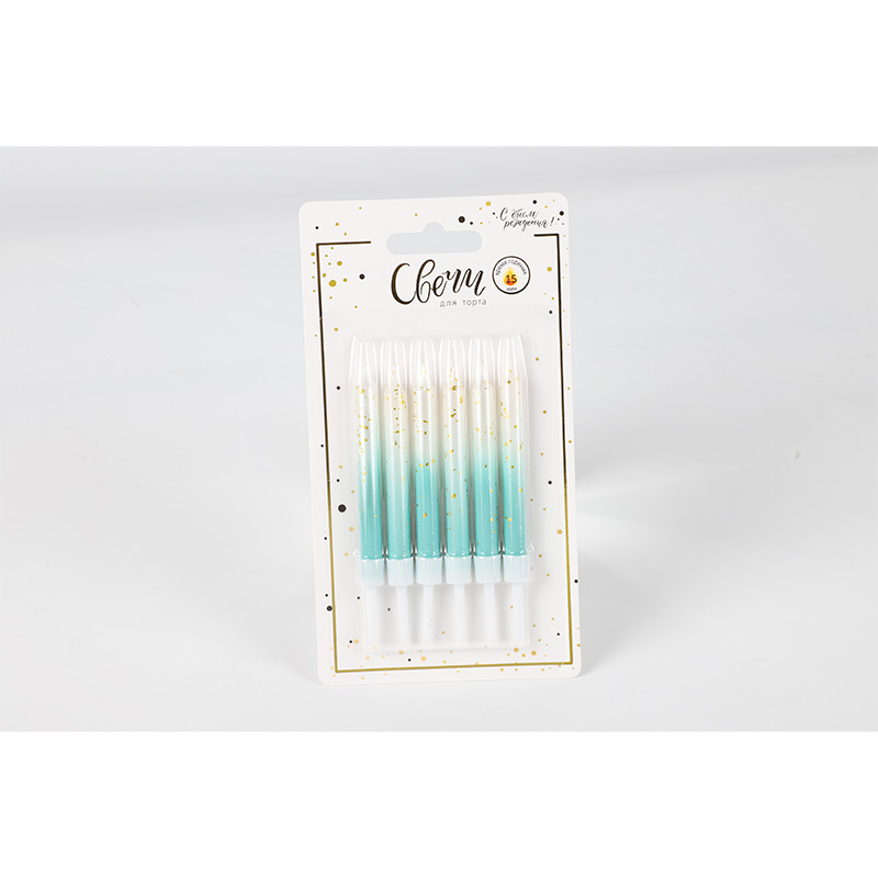 Свечи тортовые классические "Точки" голубой градиент с держателями