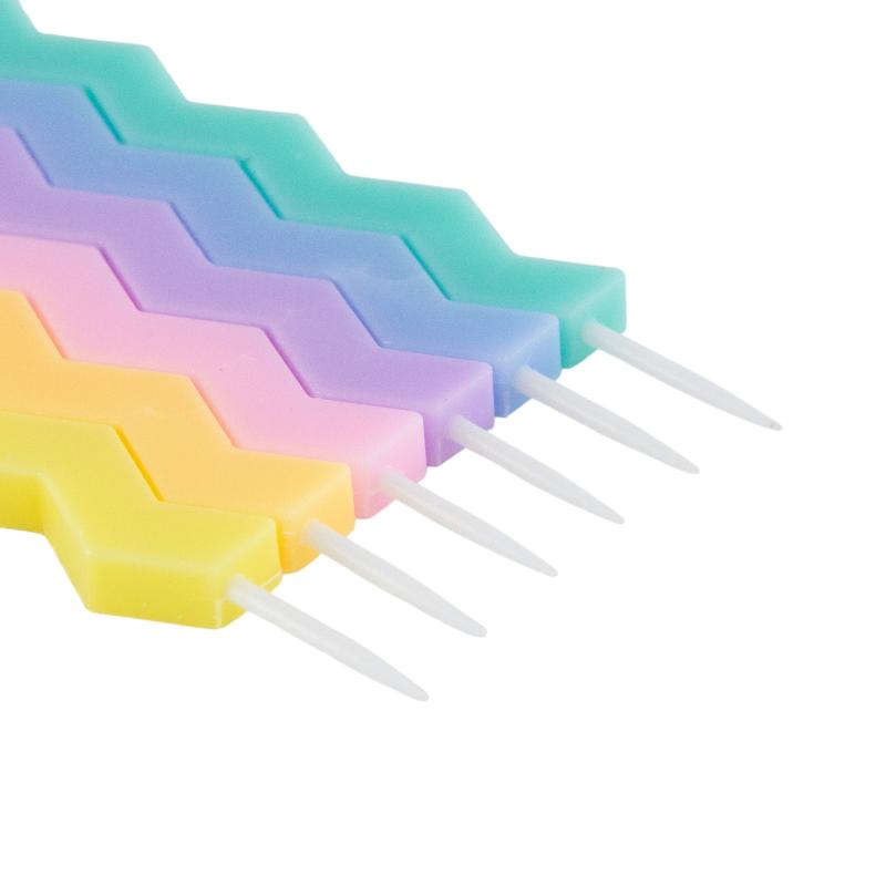 Свечи тортовые классические "Зигзаги" с держателями, разноцветная пастель