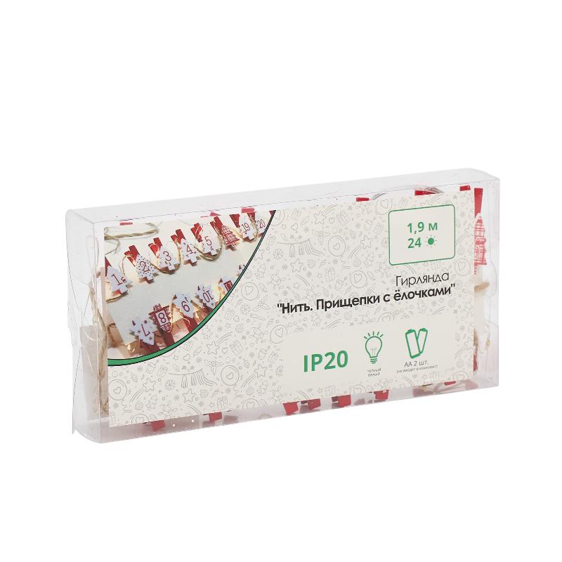 Светодиодная гирлянда "Нить. Прищепки с елочками"