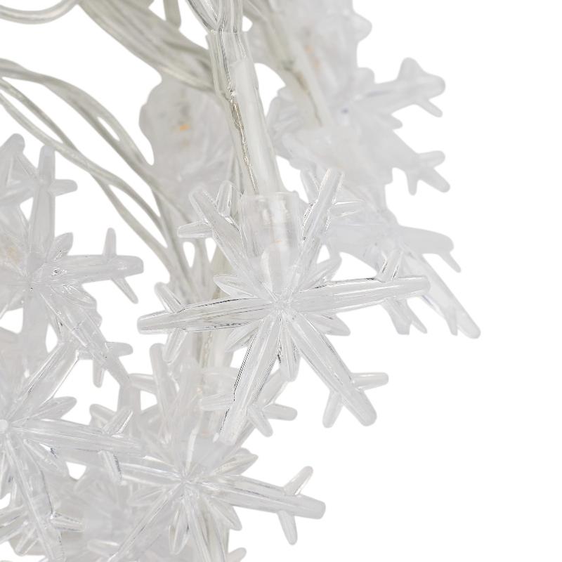 Светодиодная гирлянда Нить с изящными снежинками – это волшебное украшение, которое наполняет атмосферу теплом и уютом. Каждый нежный световой элемент, словно крошечная звезда, мягко переливается и играет, создавая чарующий калейдоскоп света, который окутывает пространство волшебством зимнего вечера.