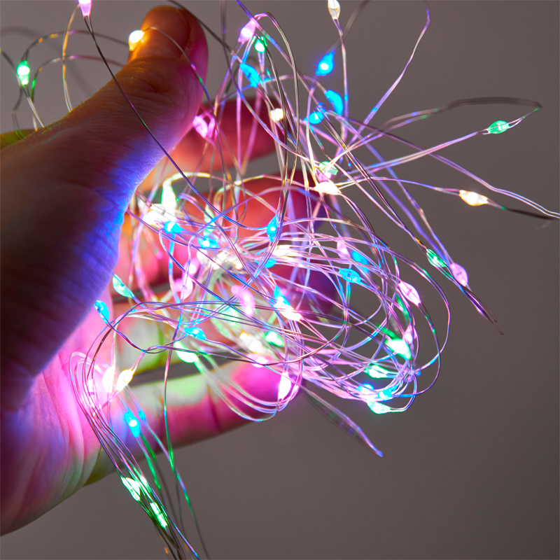 Светодиодная гирлянда «Роса» представляет собой множество светодиодов на тонком медном проводе, которые светятся, словно капли росы.