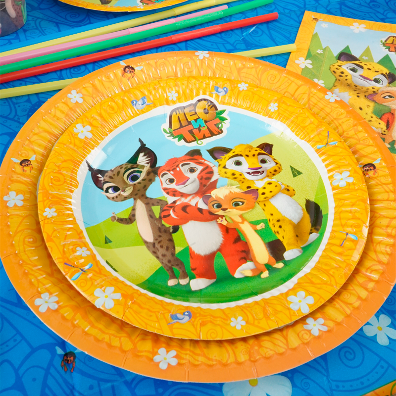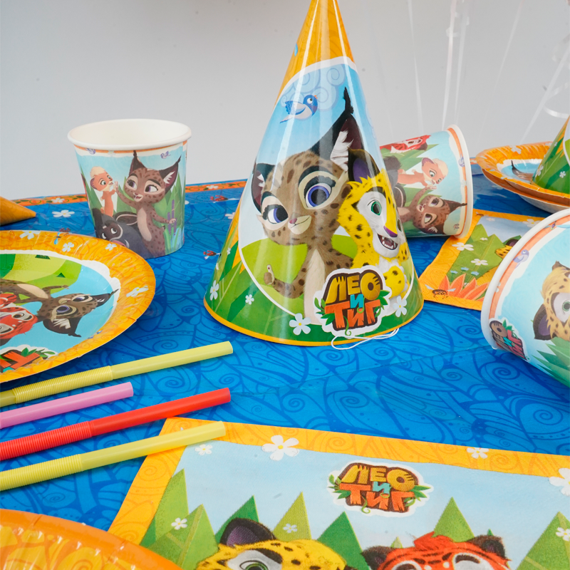 Оформление детского праздника лицензионным дизайном «Лео и Тиг» подойдет как для мальчиков, так и для девочек до 6 лет.