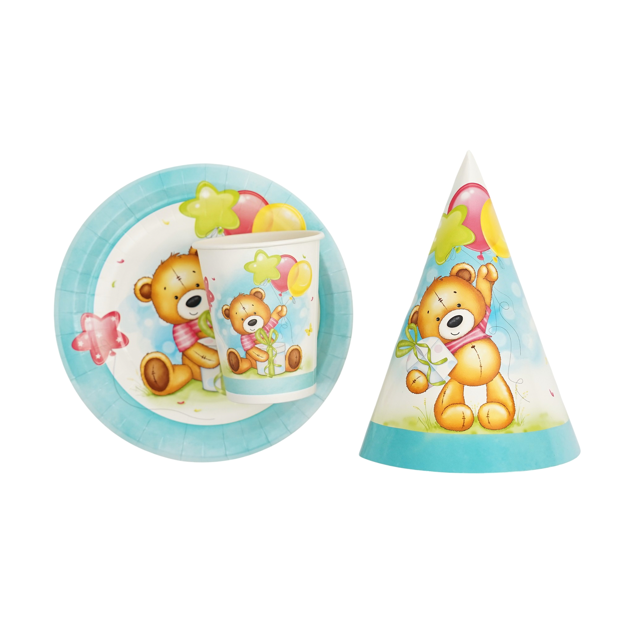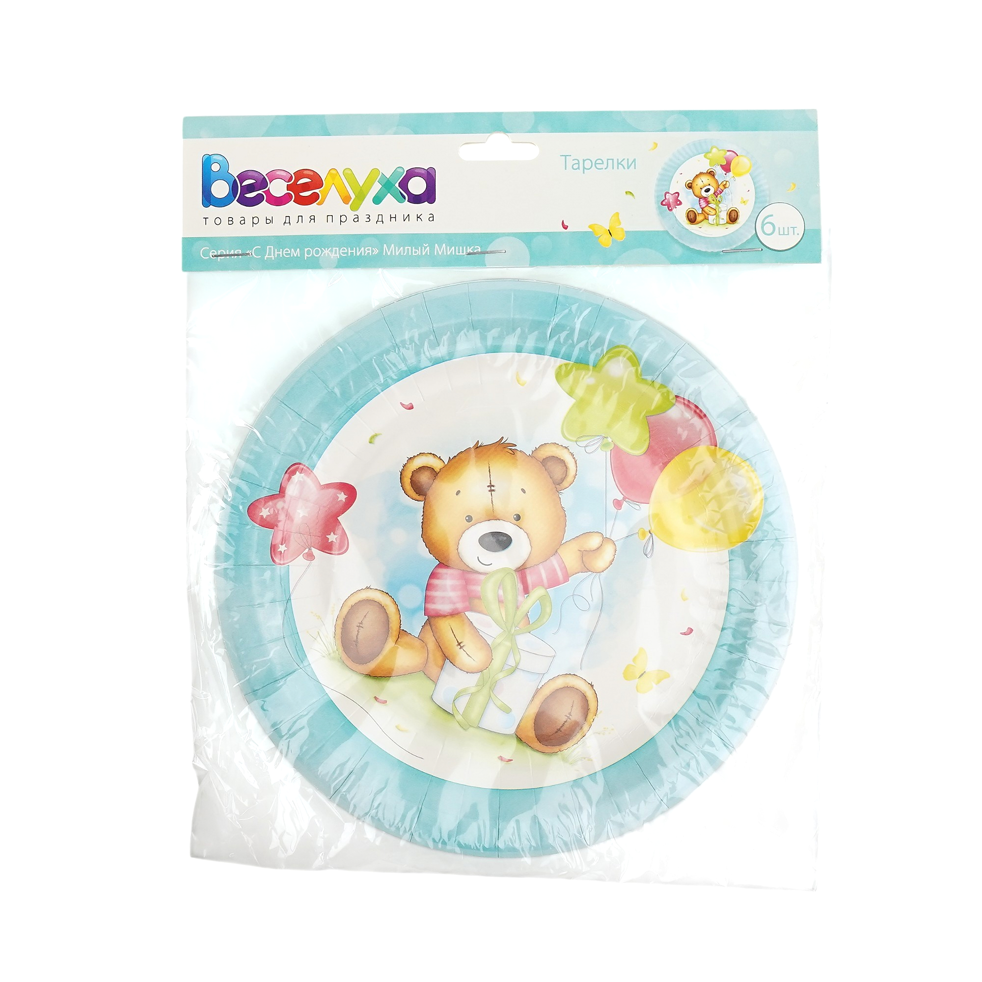Праздничные тарелки «С Днем рождения» Милый Мишка идеально украсят праздничный стол. Тарелки подходят как для холодных, так и горячих блюд.
