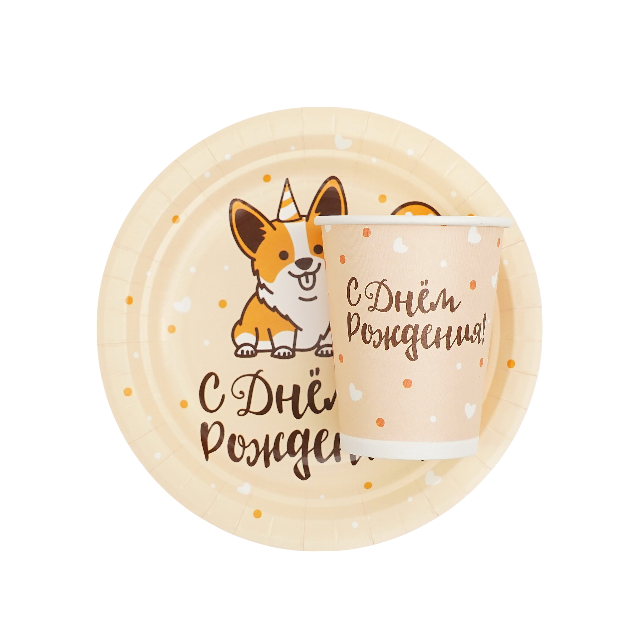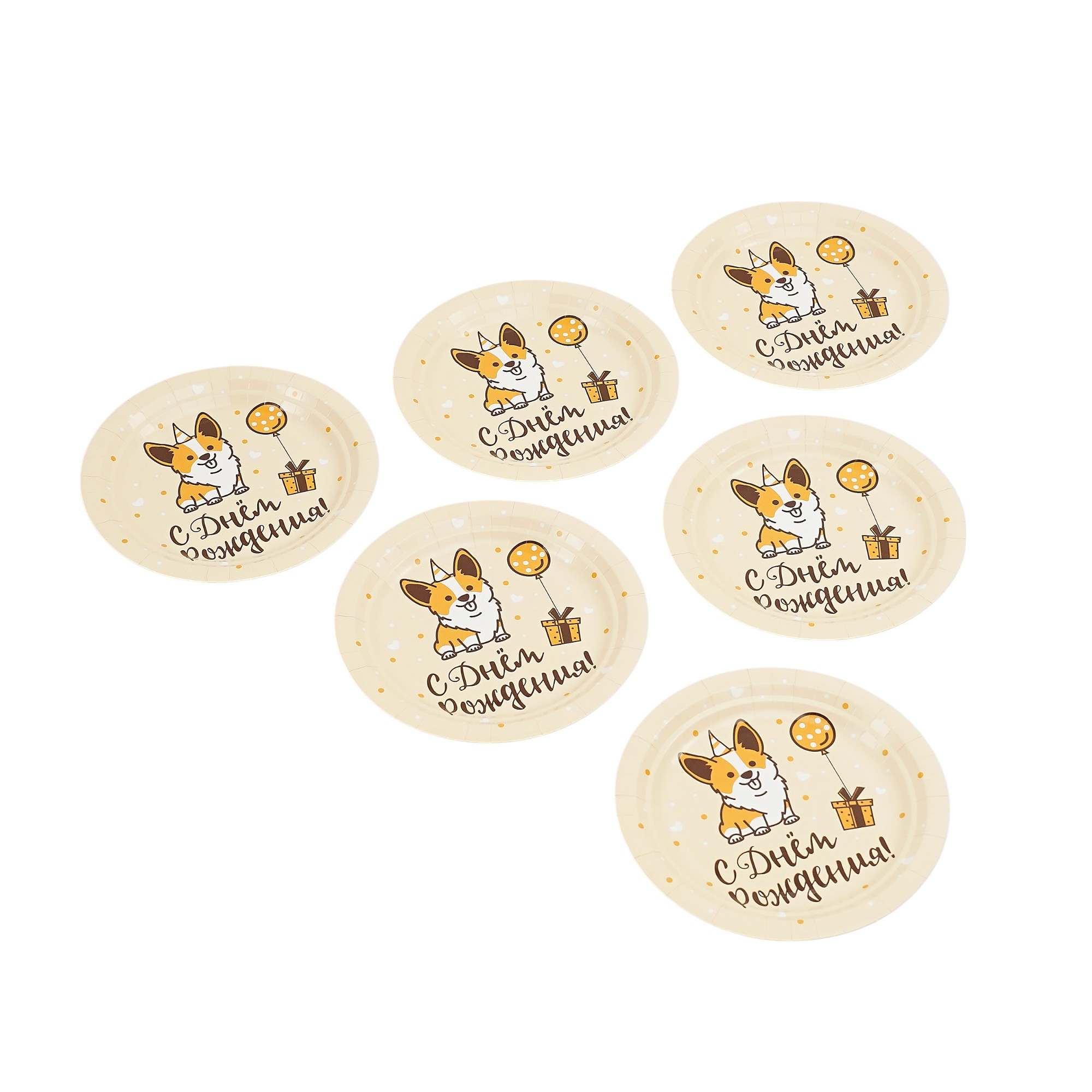 Праздничные тарелки "С днем рождения" Веселый корги идеально украсят праздничное мероприятие. Тарелки подходят как для холодных, так и горячих блюд. |