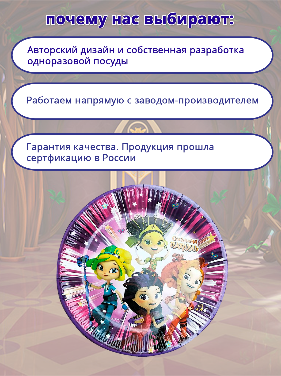 Праздничные тарелки «Сказочный патруль» идеально украсят Ваш праздничный банкет. Тарелки подходят как для холодных, так и горячих блюд.