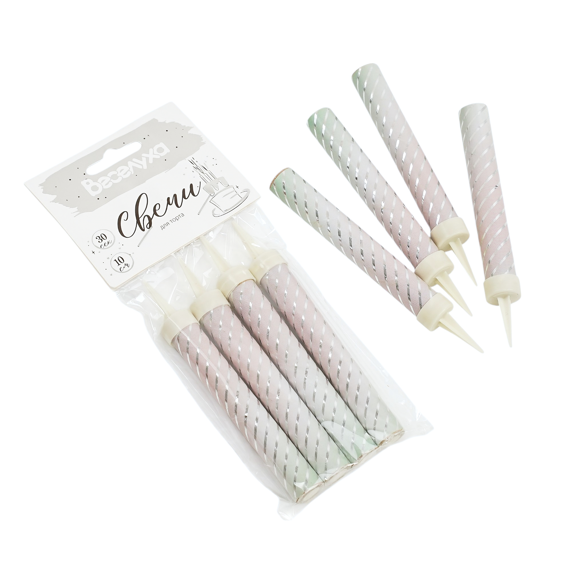 Тортовая свеча "Макаронс" с серебряной печатью, 30 сек.