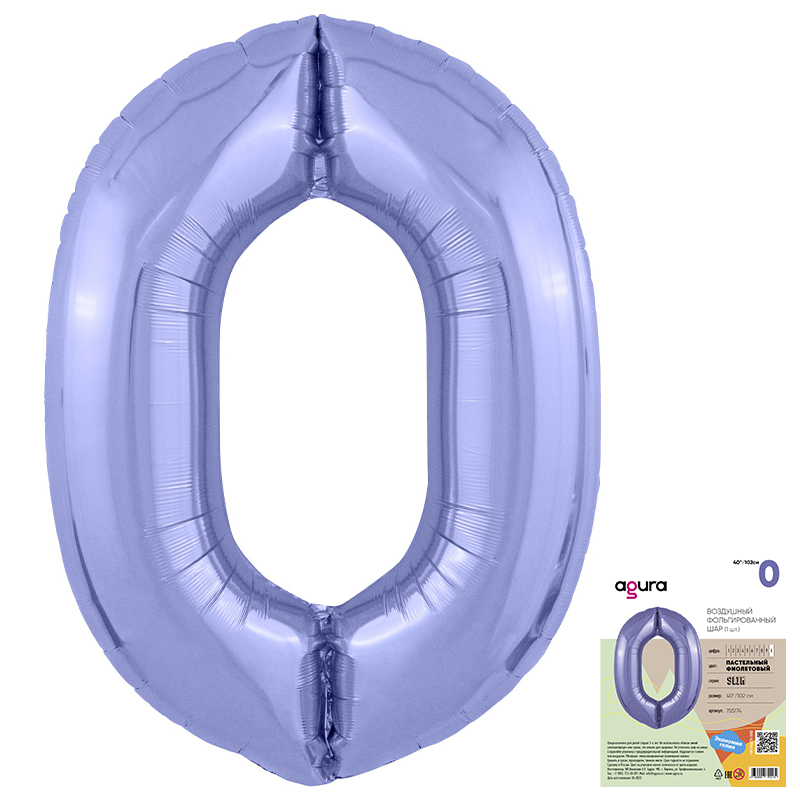 Цифра 0 Фиолетовая пастель SLIM в упаковке, фольгированные шары