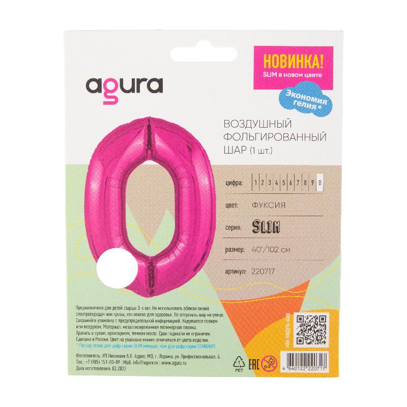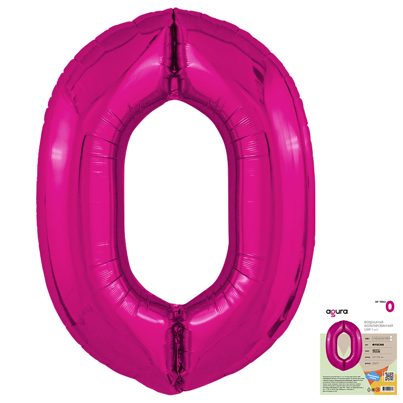 Цифра 0 Фуксия SLIM в упаковке, фольгированные шары