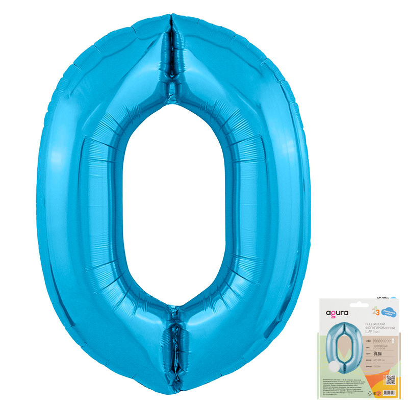 Цифра 0 Голубая SLIM в упаковке, фольгированные шары