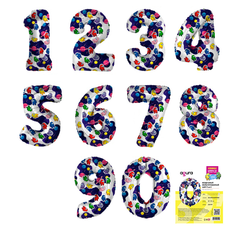 Цифра 0 Космонавтики в упаковке, фольгированные шары