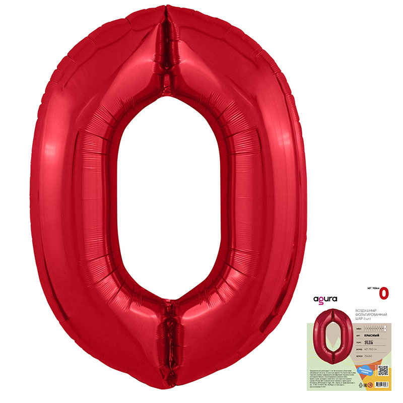 Цифра 0 Красная SLIM в упаковке, фольгированные шары