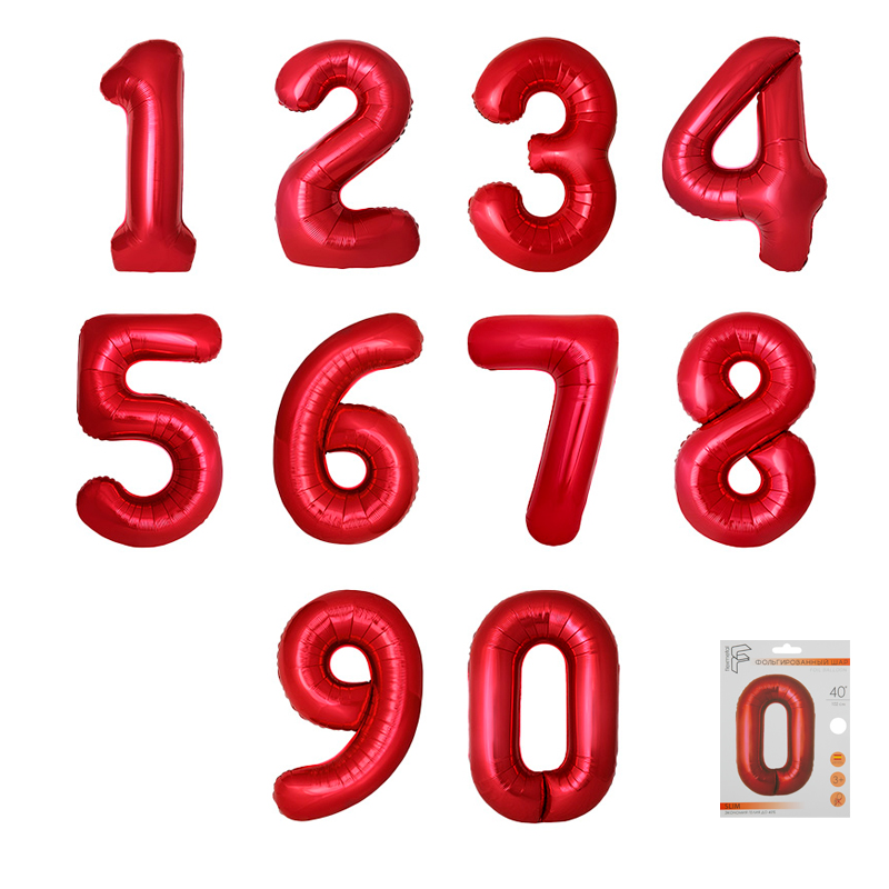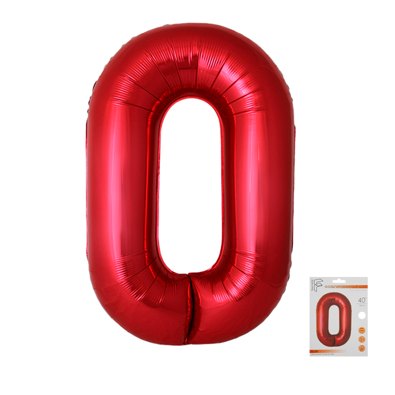 Цифра 0 Красный SLIM в упаковке, фольгированные шары