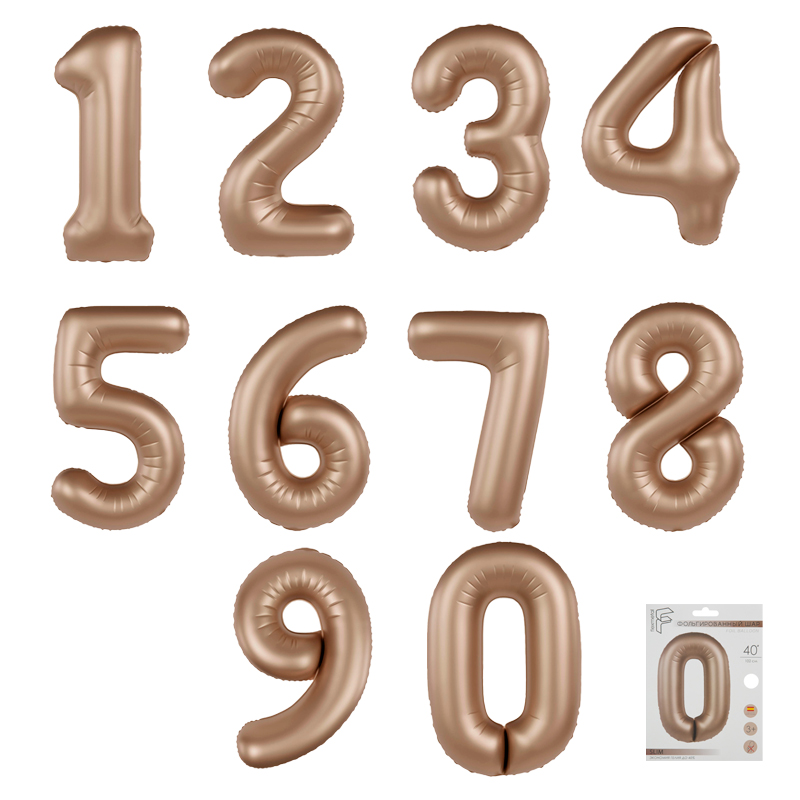 Цифра 0 Латте сатин матовый SLIM в упаковке, фольгированные шары