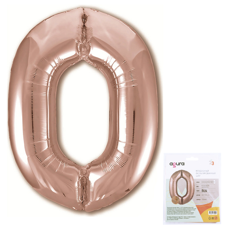 Цифра 0 Розовое золото SLIM в упаковке, фольгированные шары