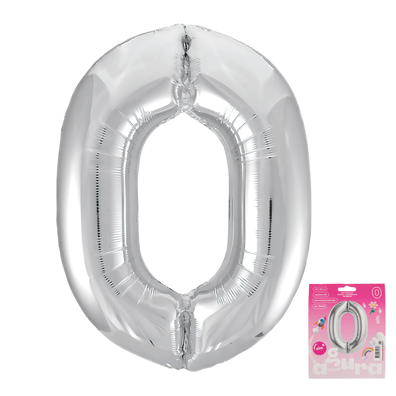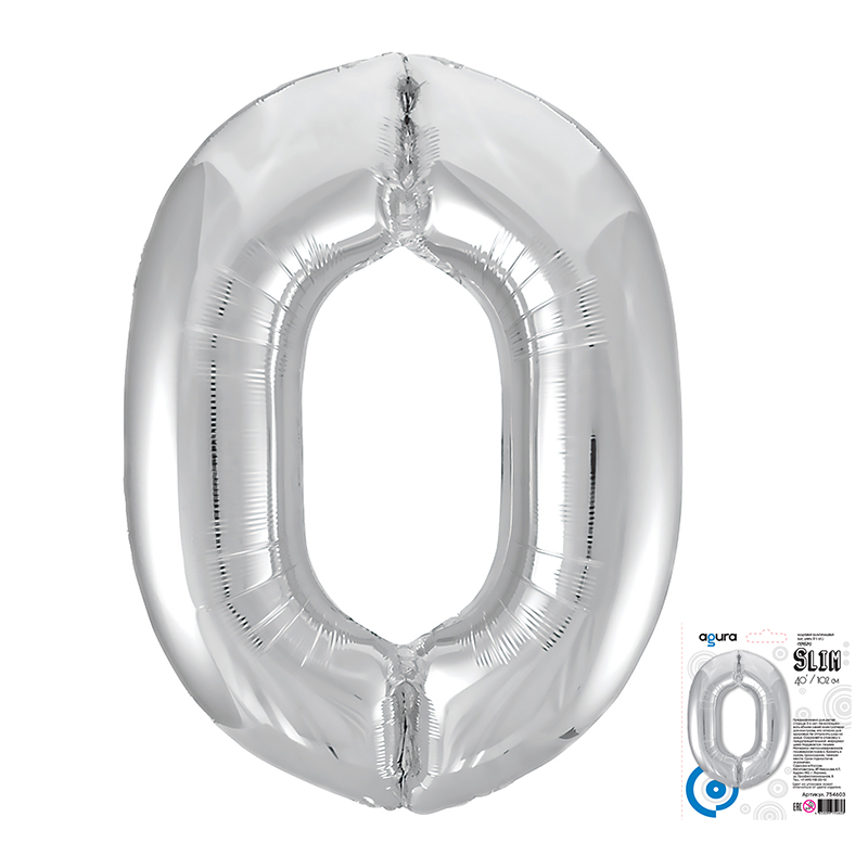 Цифра 0 Серебро SLIM в упаковке, фольгированные шары
