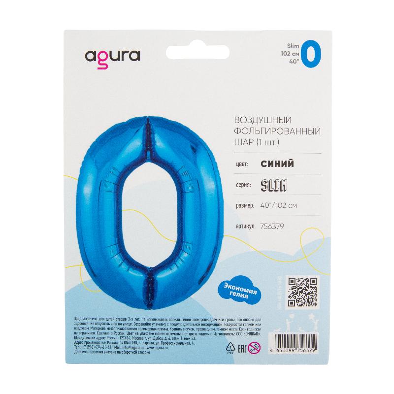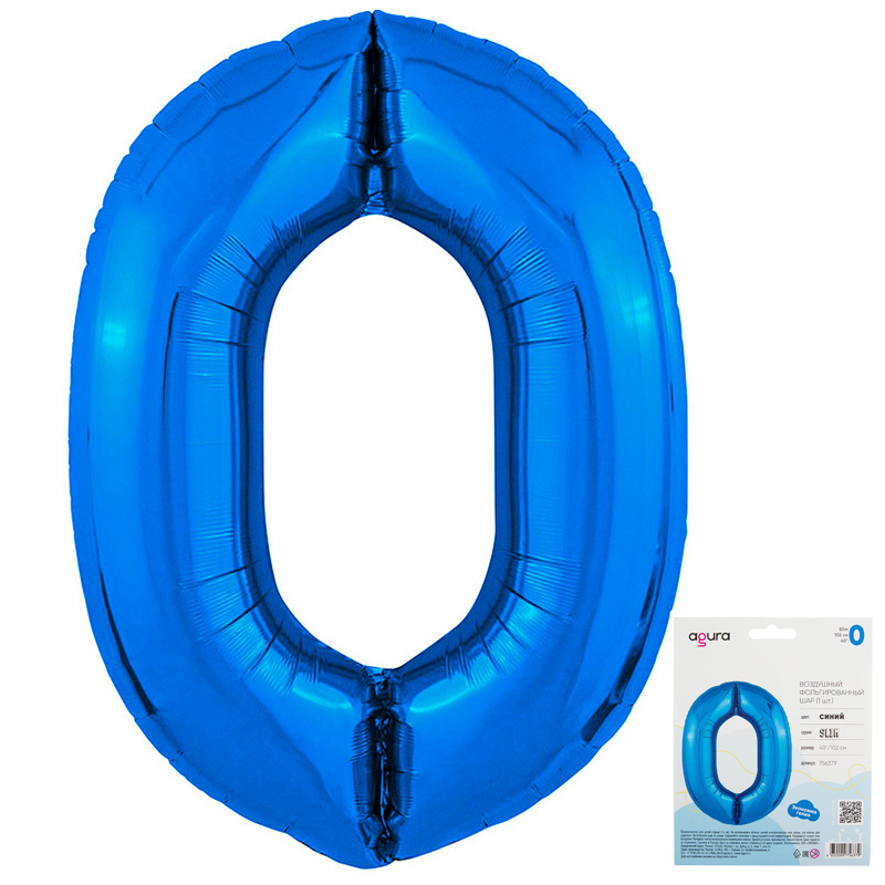 Цифра 0 Синий SLIM в упаковке, фольгированные шары