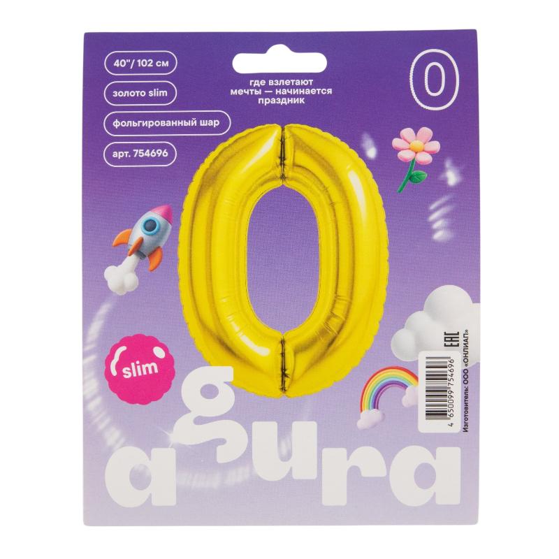 Цифра 0 Золото SLIM в упаковке, фольгированные шары