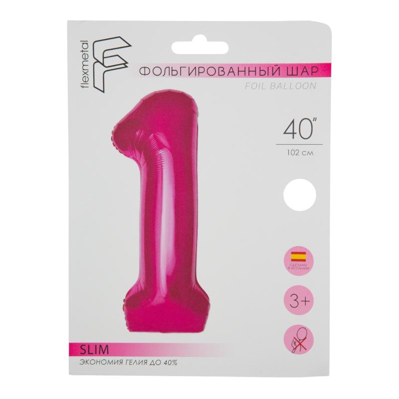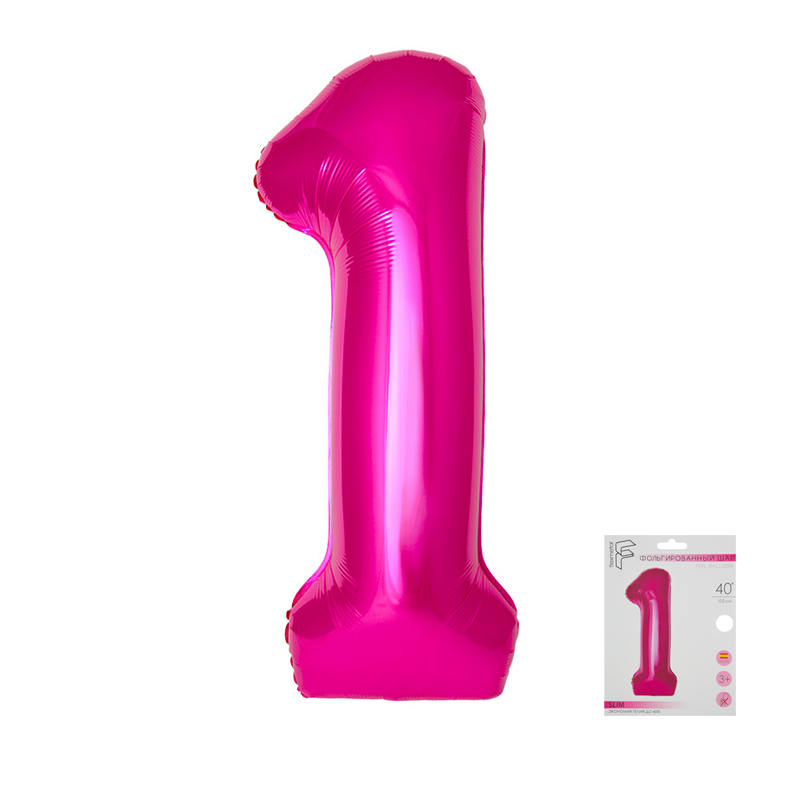 Цифра 1 Фуксия SLIM в упаковке, фольгированные шары