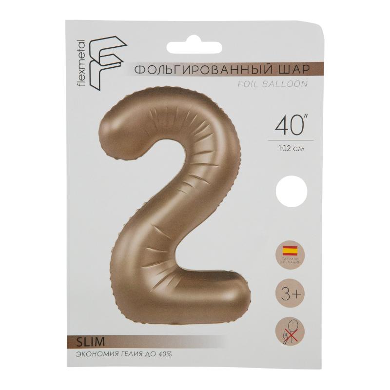 Цифра 2 Латте сатин матовый SLIM в упаковке, фольгированные шары