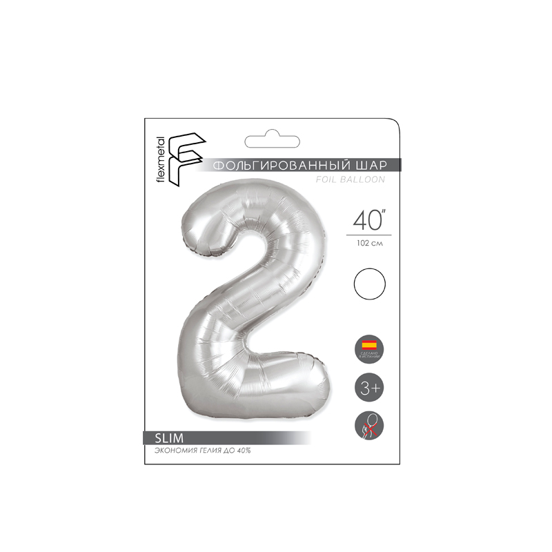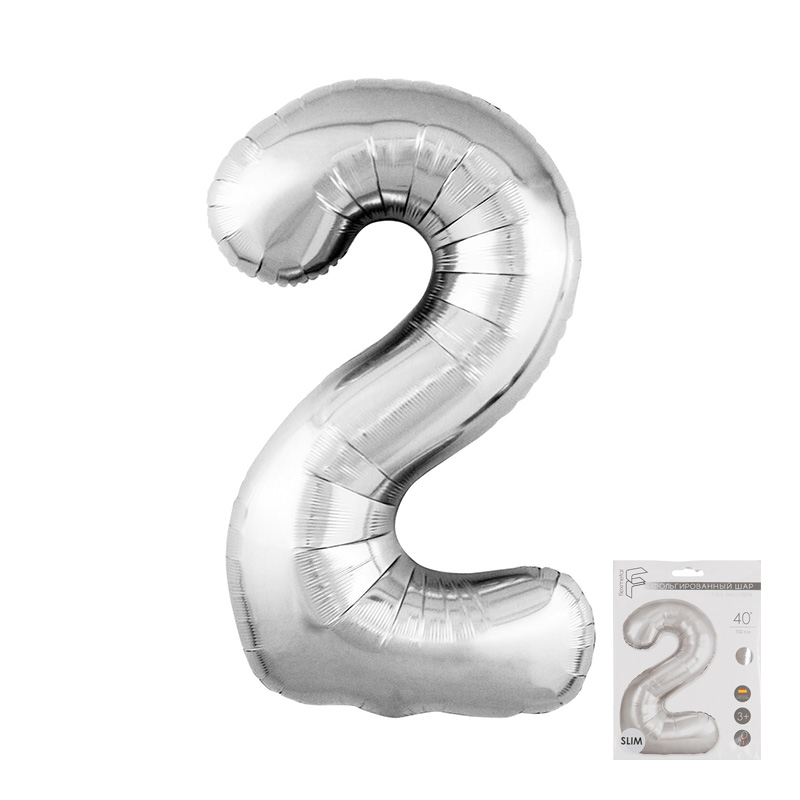 Цифра 2 Серебро SLIM в упаковке, фольгированные шары