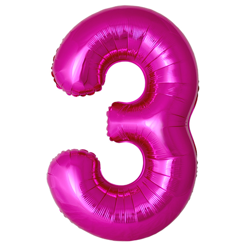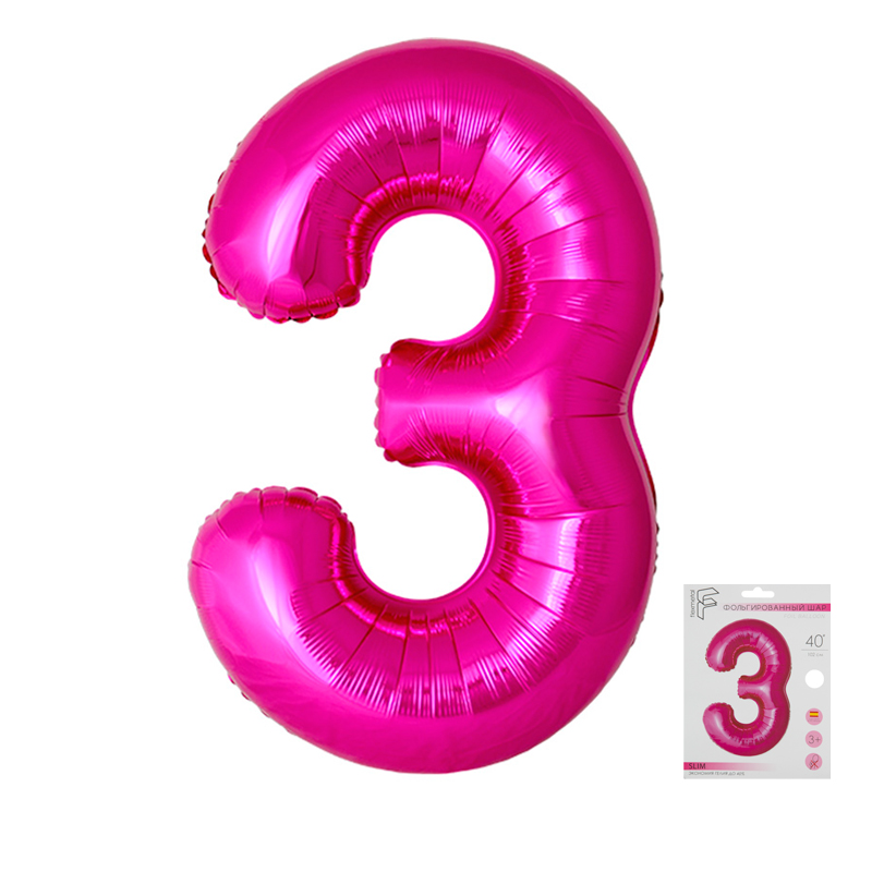 Цифра 3 Фуксия SLIM в упаковке, фольгированные шары