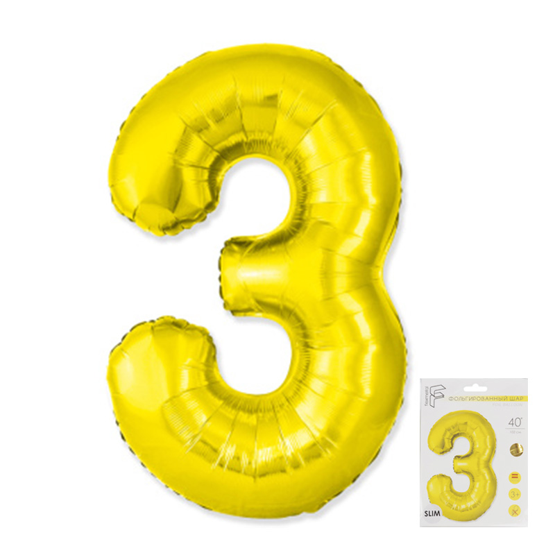 Цифра 3 Золото SLIM в упаковке, фольгированные шары
