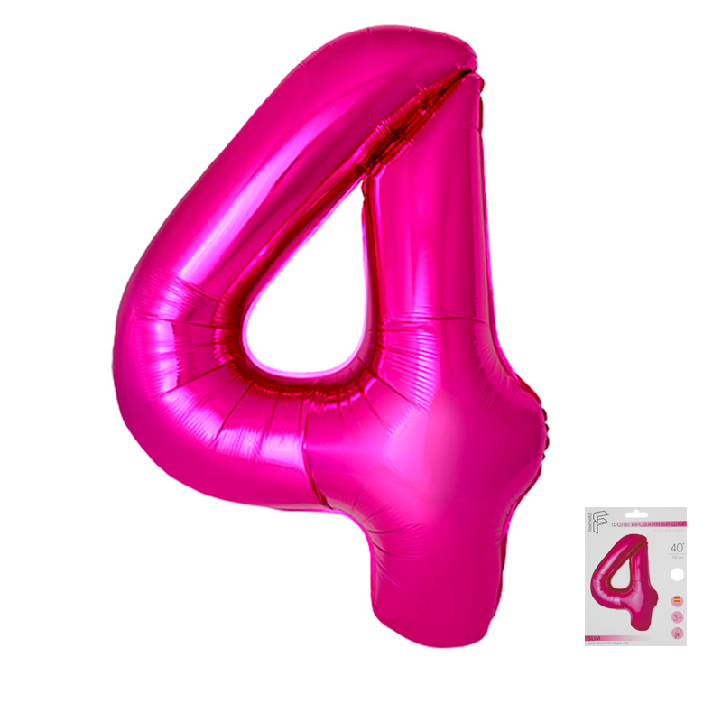 Цифра 4 Фуксия SLIM в упаковке, фольгированные шары