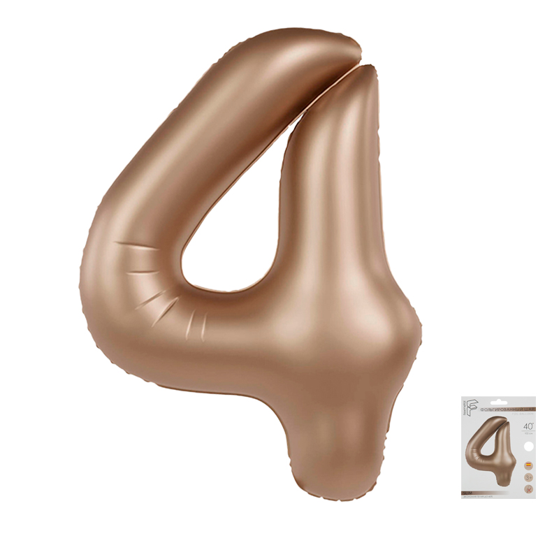 Цифра 4 Латте сатин матовый SLIM в упаковке, фольгированные шары
