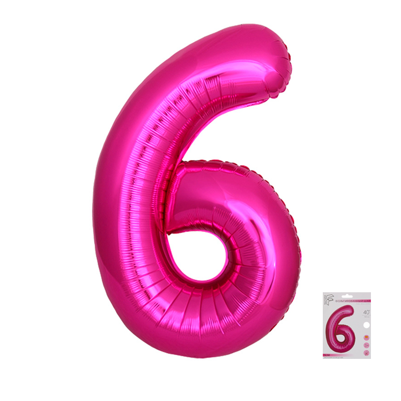 Цифра 6 Фуксия SLIM в упаковке, фольгированные шары