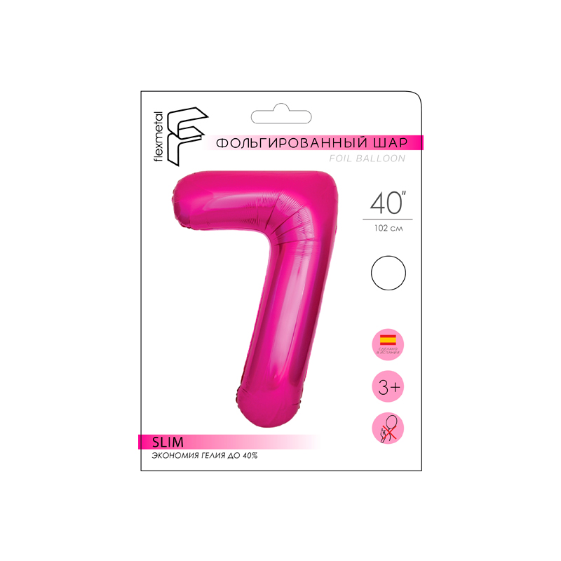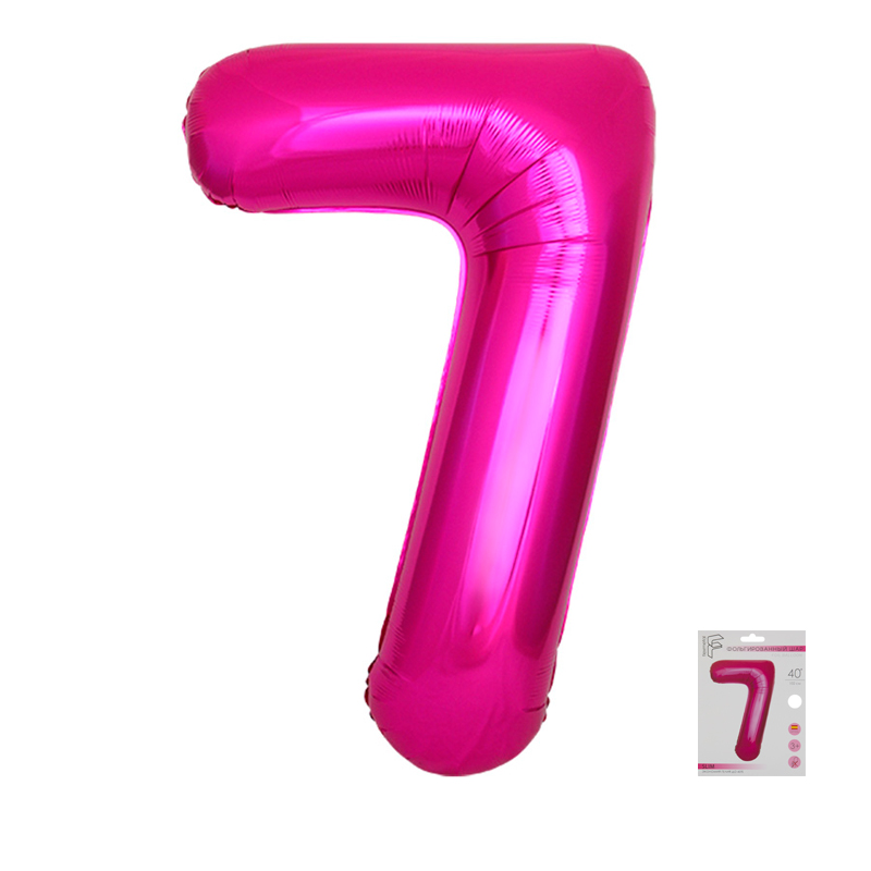 Цифра 7 Фуксия SLIM в упаковке, фольгированные шары
