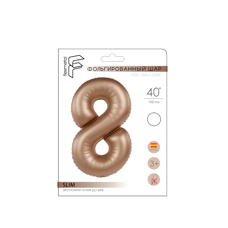 Цифра 8 Латте сатин матовый SLIM в упаковке, фольгированные шары