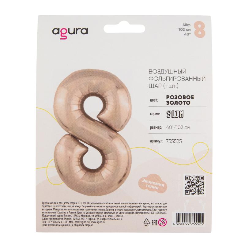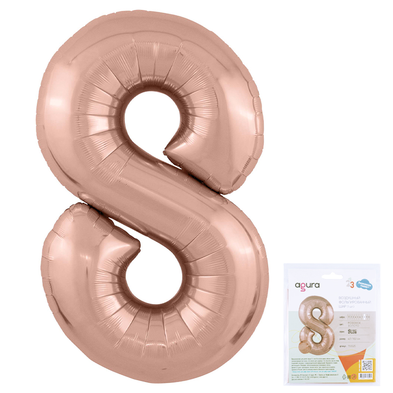 Цифра 8 Розовое золото SLIM в упаковке, фольгированный шар