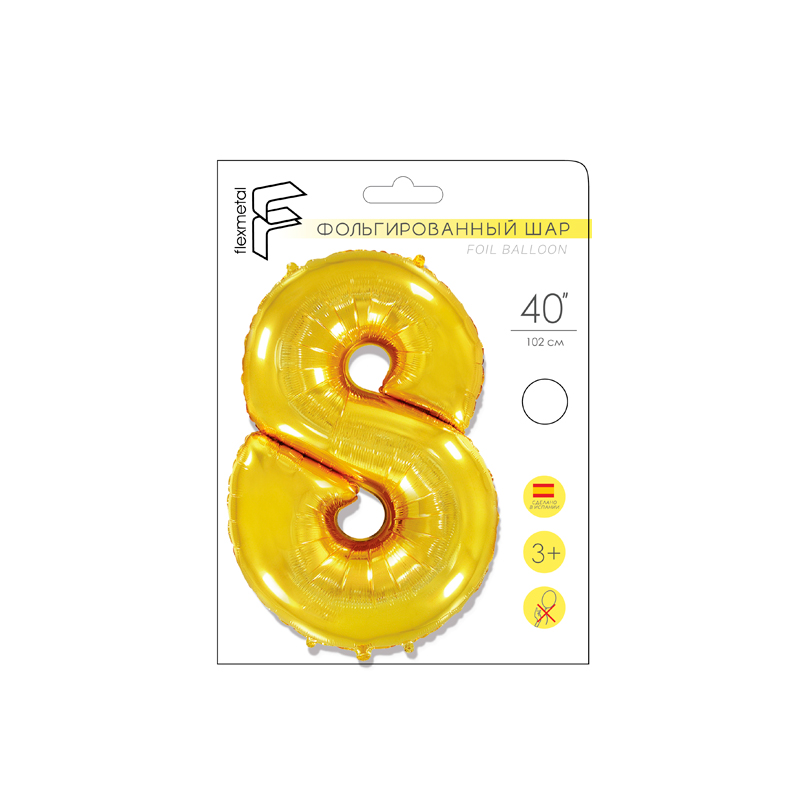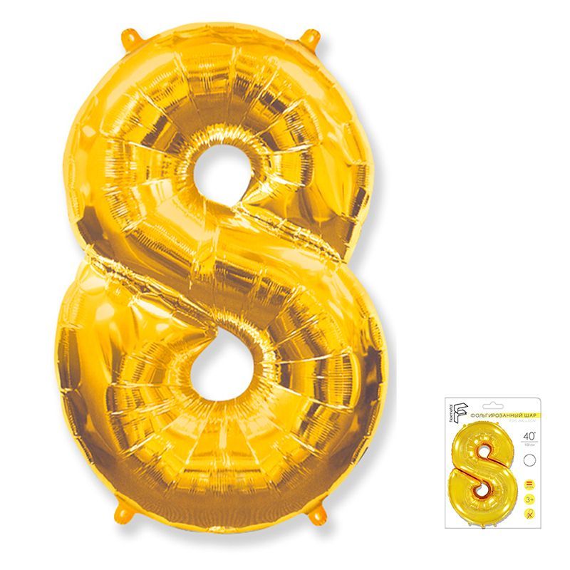 Цифра 8 Золото в упаковке / Eight, фольгированный шар
