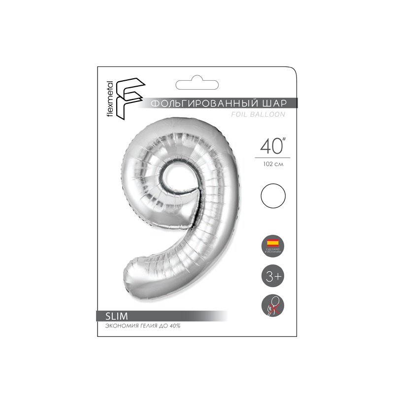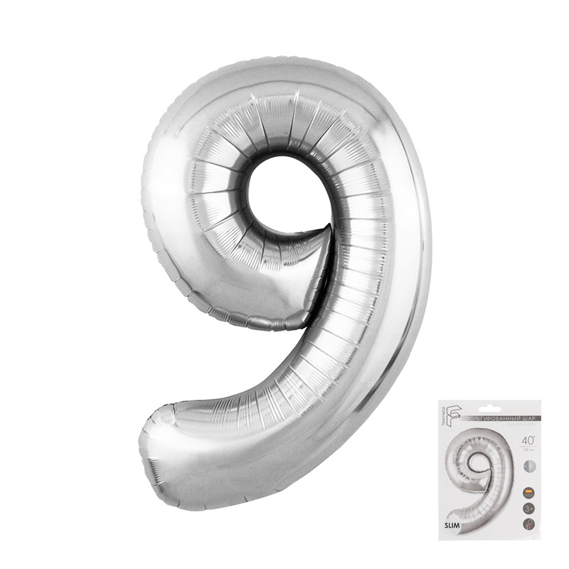 Цифра 9 Серебро SLIM в упаковке, фольгированные шары