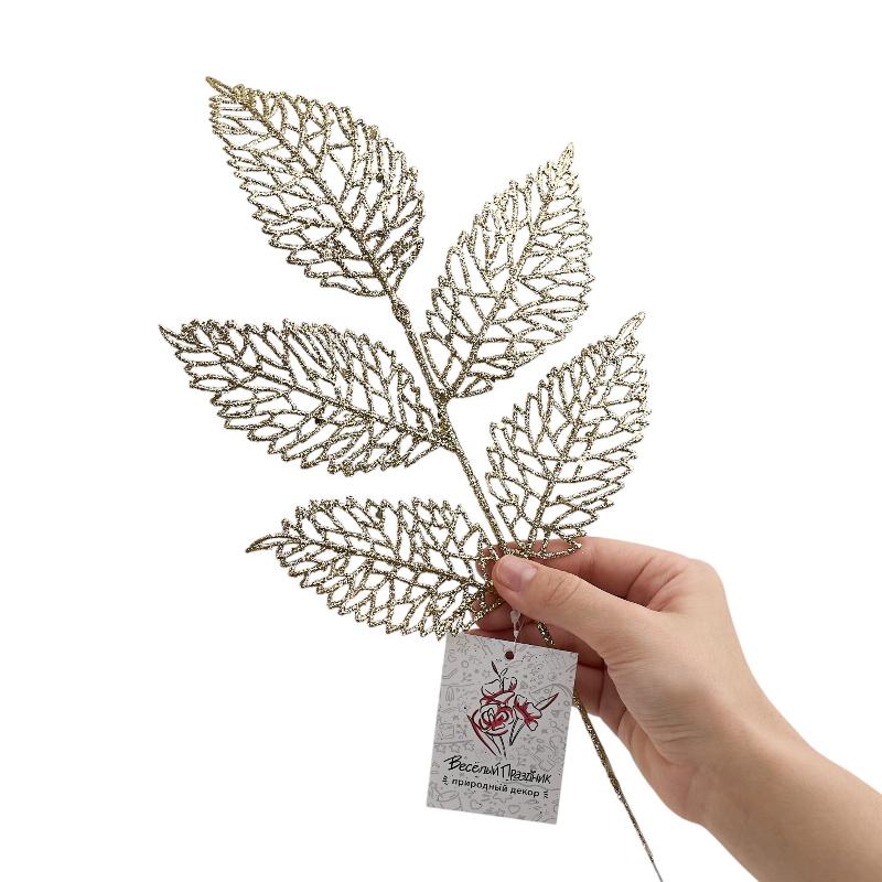 Ветка глиттерная искусственная "Кружевная" Золотая
